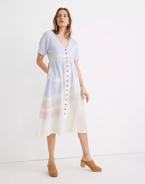 Vestido midi con botones en la parte delantera y teñido anudado de Madewell $ 128